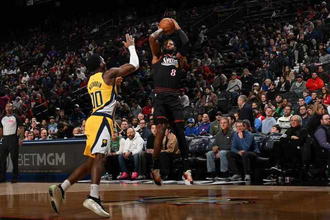 76人:恩比德39分9篮板赛季新高,乔治23分6篮板5助攻,巴洛10分8篮板,埃奇库姆22分4篮板5助攻。